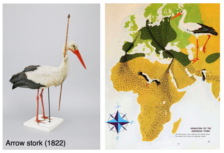 箭矢鹳及白鹳迁徙路线(图片来源:Zoologische Sammlung der Universitai Rostock)