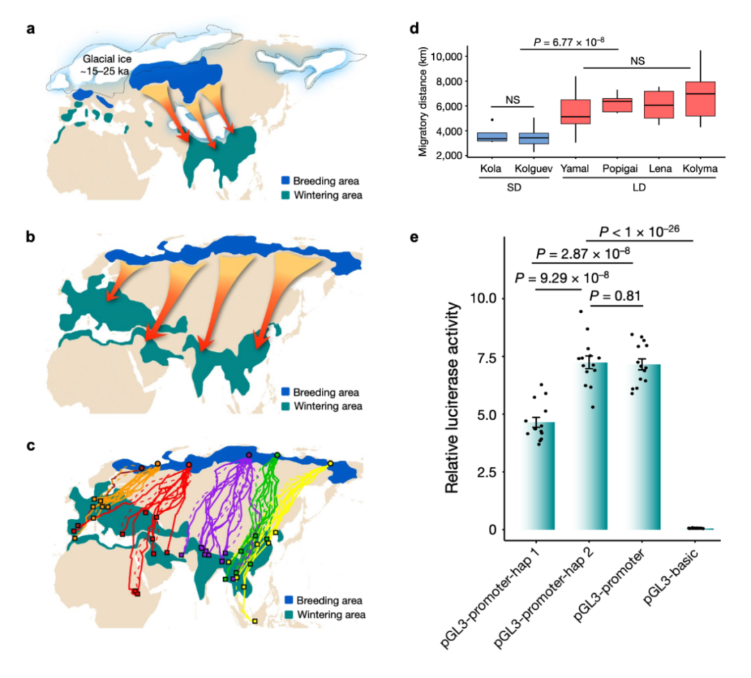 对于当前的迁徙路线而言,研究人员发现不同路线之间的环境异质性很强,环境巨变区域与迁徙路线边界高度吻合,并且路线之间的差异与选择性遗传分化的相关程度明显大于中性遗传分化,这说明环境的差异以及相关的本地适应,在维持当前迁徙路线中可能发挥着重要作用。