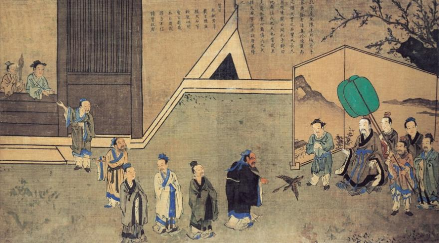 孔子圣迹图:楛矢贯隼(图片来源:百度图库)