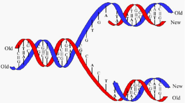 DNA的复制方式叫“半保留复制”,相当于将这架梯子中间的横杆劈开,两根粗杆分开后,分别用每一根粗杆作为模板合成出另一根粗杆,并最终组合成两架和先前一模一样的梯子,实现DNA扩增。如果接着将新合成的梯子继续分开当作模板,又能获得更多的新梯子。