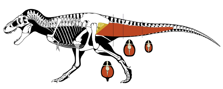 霸王龙等恐龙具有巨大的肌肉,将尾巴连接在臀和腿部。| 图片来源:Dr. Scott Hartman, CC BY-ND