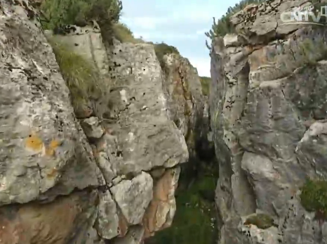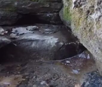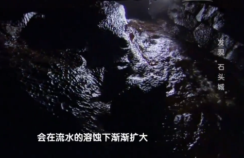 在裂缝的一侧专家发现了一条可供人深入的地下通道,裂隙的开口虽然狭窄,但底部却相对宽敞和平坦。沟谷底部的崖壁下方有一条小小的溪流在缓缓流淌,地质专家罗银飞在观察后发现,这条裂谷两旁的绝壁上布满了纵横交错的裂隙,他推测说这里的水也许就来自这些裂隙之中。