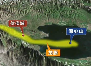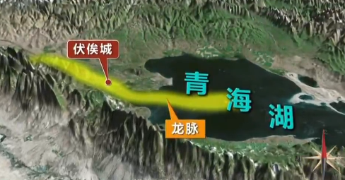 专家在仔细查看了这一带的地质图之后,发现“龙脉”很可能是一条贯穿了青海湖的古老岩脉。这条岩层因为地质挤压的作用呈现出线状分布局部隆起的特征,岩脉的一端在青海湖中出路形成了海心山,而另外一端则穿过湖畔的伏俟城,指向了青海湖西北的山岭之中。