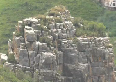 通过航拍画面专家发现狭长的裂缝在山顶上不止一个,从空中俯瞰,它们就向山巅之上被撕开的条条伤口。