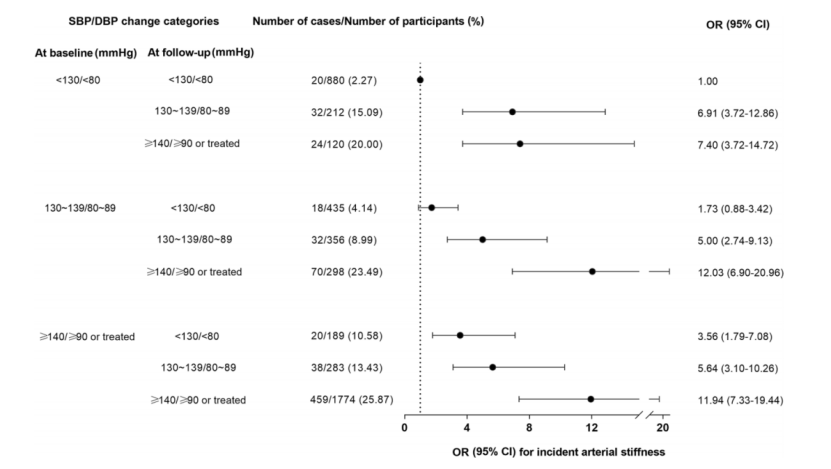 来源:Liu S, Wu S, Niu J, Zheng R, et al. The 2017 ACC/AHA stage 1 hypertension is associated with arterial stiffness: a prospective analysis. Aging (Albany NY). 2021 Mar 26;13. doi: 10.18632/aging.202764.