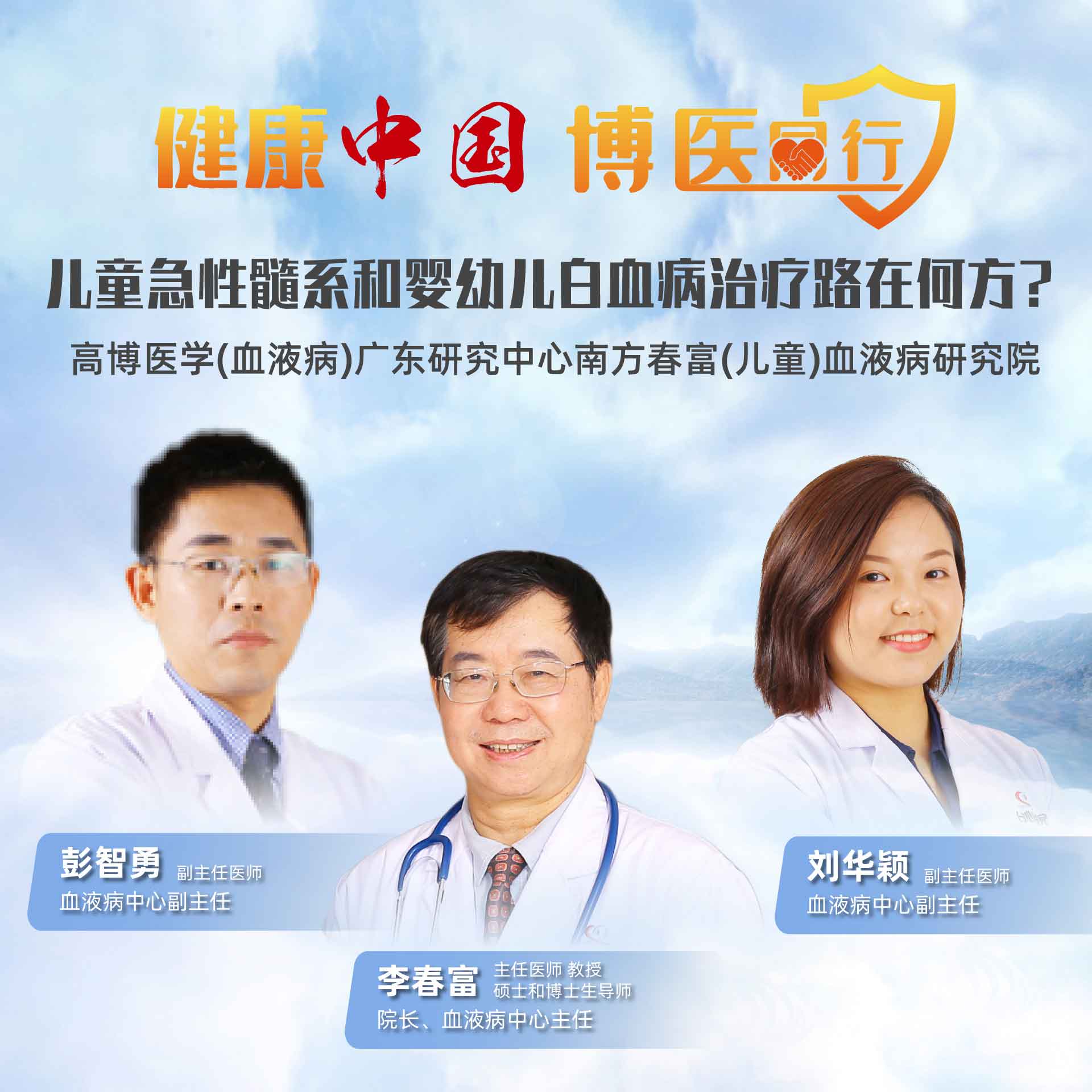 上海报业集团旗下“海上名医”平台特邀高博医学(血液病)广东研究中心南方春富(儿童)血液病研究院院长、血液病中心主任李春富,血液病中心副主任彭智勇、刘华颖,共同带来《儿童急性髓系和婴幼儿白血病治疗路在何方?》视频直播。