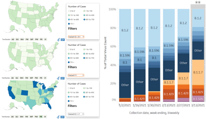 [1]https://nextstrain.org/ncov/global?l%20=%20clock [2]Kemp SA, et al. SARS-CoV-2 evolution during treatment of chronic infection. Nature. 2021 Feb 5. [3]Grubaugh ND, et al. Public health actions to control new SARS-CoV-2 variants. Cell. 2021 Mar 4;184(5):1127-1132. [4]Davies NG, et al. Increased mortality in community-tested cases of SARS-CoV-2 lineage B.1.1.7. Nature. 2021 Mar 15. [5]Davies NG, et al. Estimated transmissibility and impact of SARS-CoV-2 lineage B.1.1.7 in England. Science. 2021 Mar 3:eabg3055. [6]Challen R, et al. Risk of mortality in patients infected with SARS-CoV-2 variant of concern 202012/1: matched cohort study. BMJ. 2021 Mar 9;372:n579. [7]https://www.cdc.gov/coronavirus/2019-ncov/transmission/variant-cases.html [8]https://www.businesswire.com/news/home/20210311005482/en/