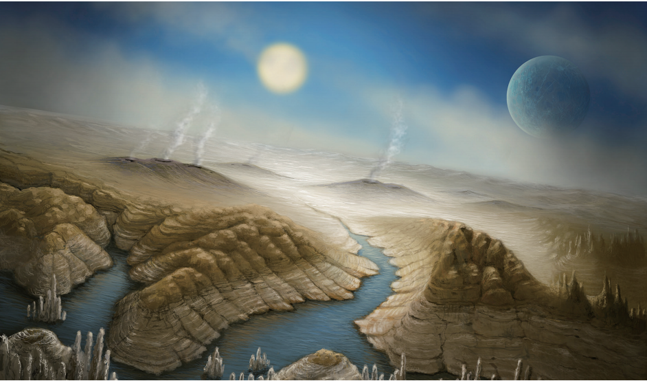 图4 艺术家对开普勒452b行星表面可能风景的想象图。(Danielle Futselaar)
