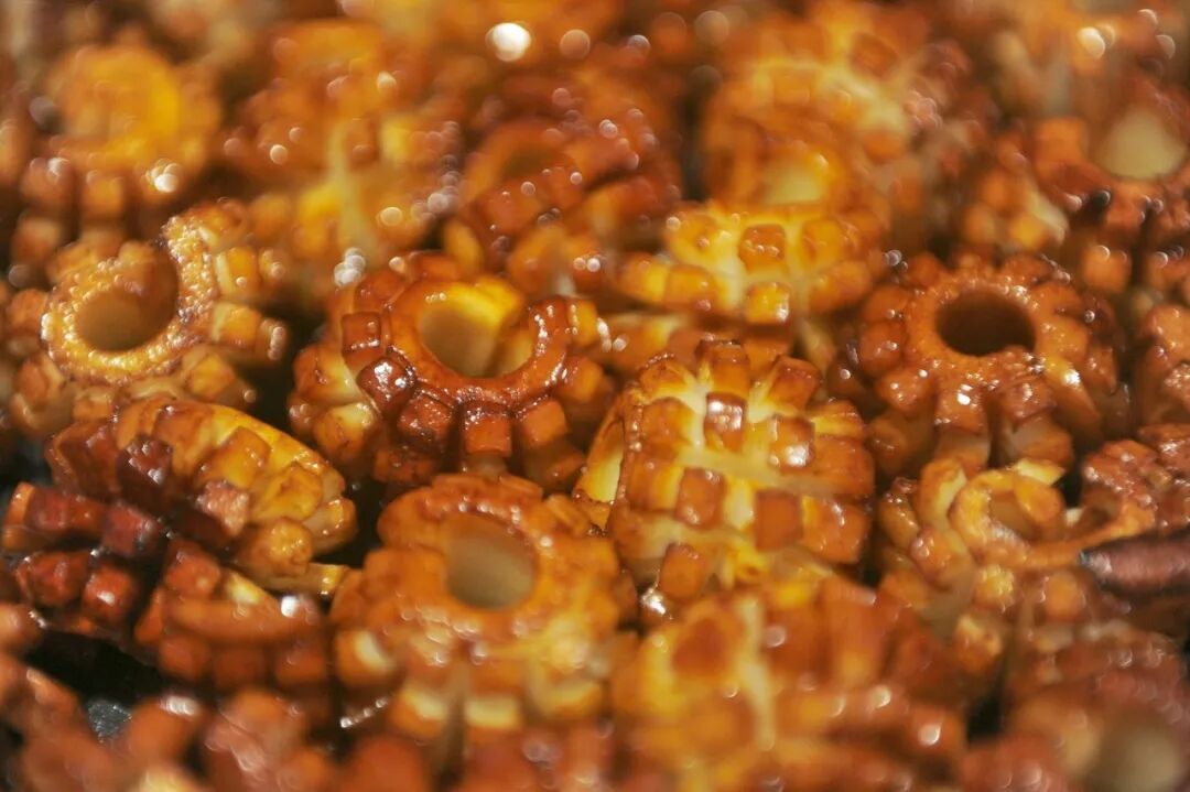 最具特色的大连小吃当属焖子,这种用淀粉制成的软糯爽口的食物在用铁板煎制后会展现出金黄的色泽,再用麻酱、蒜汁和酱油加以调味,外酥里嫩、入口即溶;鱿鱼也是大连小吃中常见的食材,无论是随处可见的铁板鱿鱼、鱿鱼丝,还是知名的二路车站小丸子,都离不开大连鱿鱼劲道弹牙的口感;如果想给亲朋带一些特产,香酥的烤鱼片是不二的选择。
