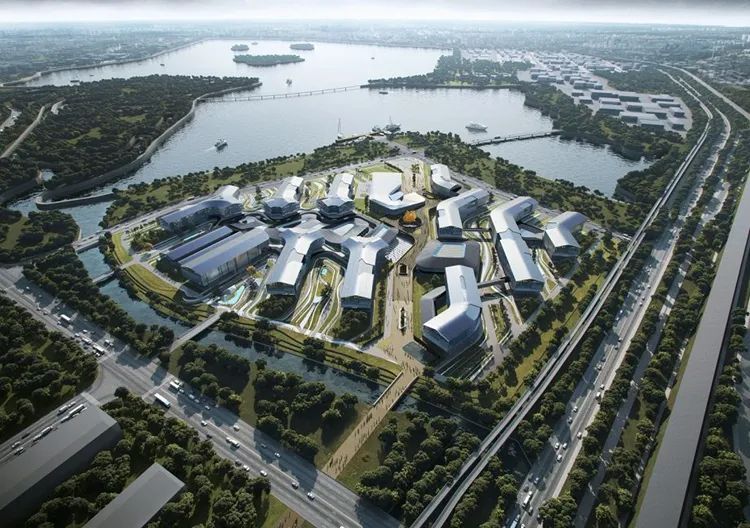 建设中的阿里巴巴达摩院的效果图。设计以“一叶浮生”为灵感,将建筑与周围景观环境完美融合,与杭州民俗文化巧妙呼应。