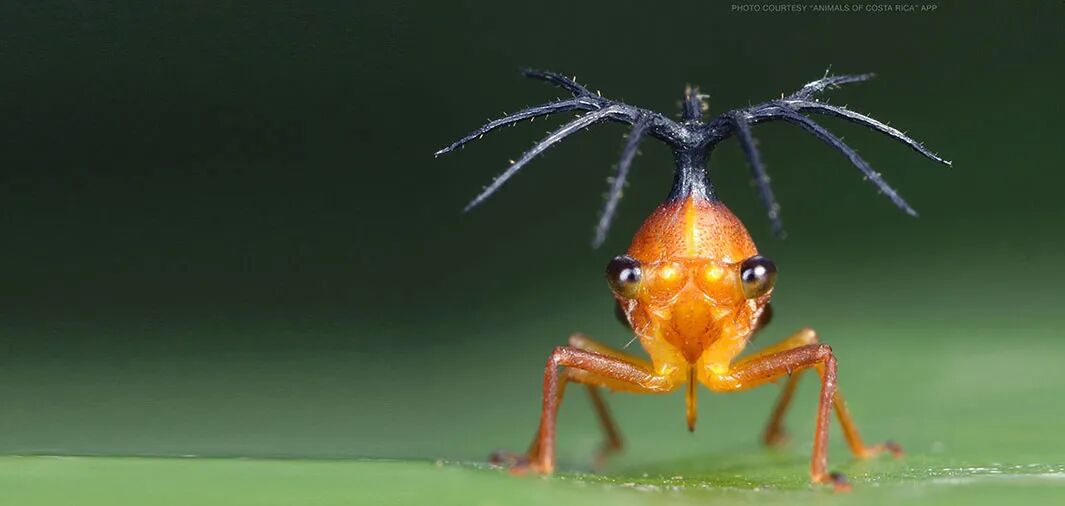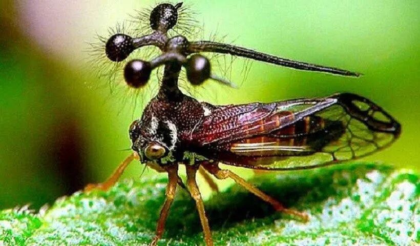 Bocydium globulare,也被称为巴西角蝉Brazilian treehopper,它的“犄角”奇特而复杂,就像真菌侵入昆虫,并从昆虫背上长出真菌子实体的样子。