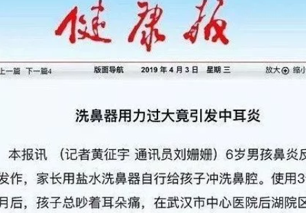 前段时间,《健康报》新闻:因男孩患鼻炎,盐水洗鼻操作不当,从而导致鼻内压力引发中耳炎!一时间,引发各位家长的议论: