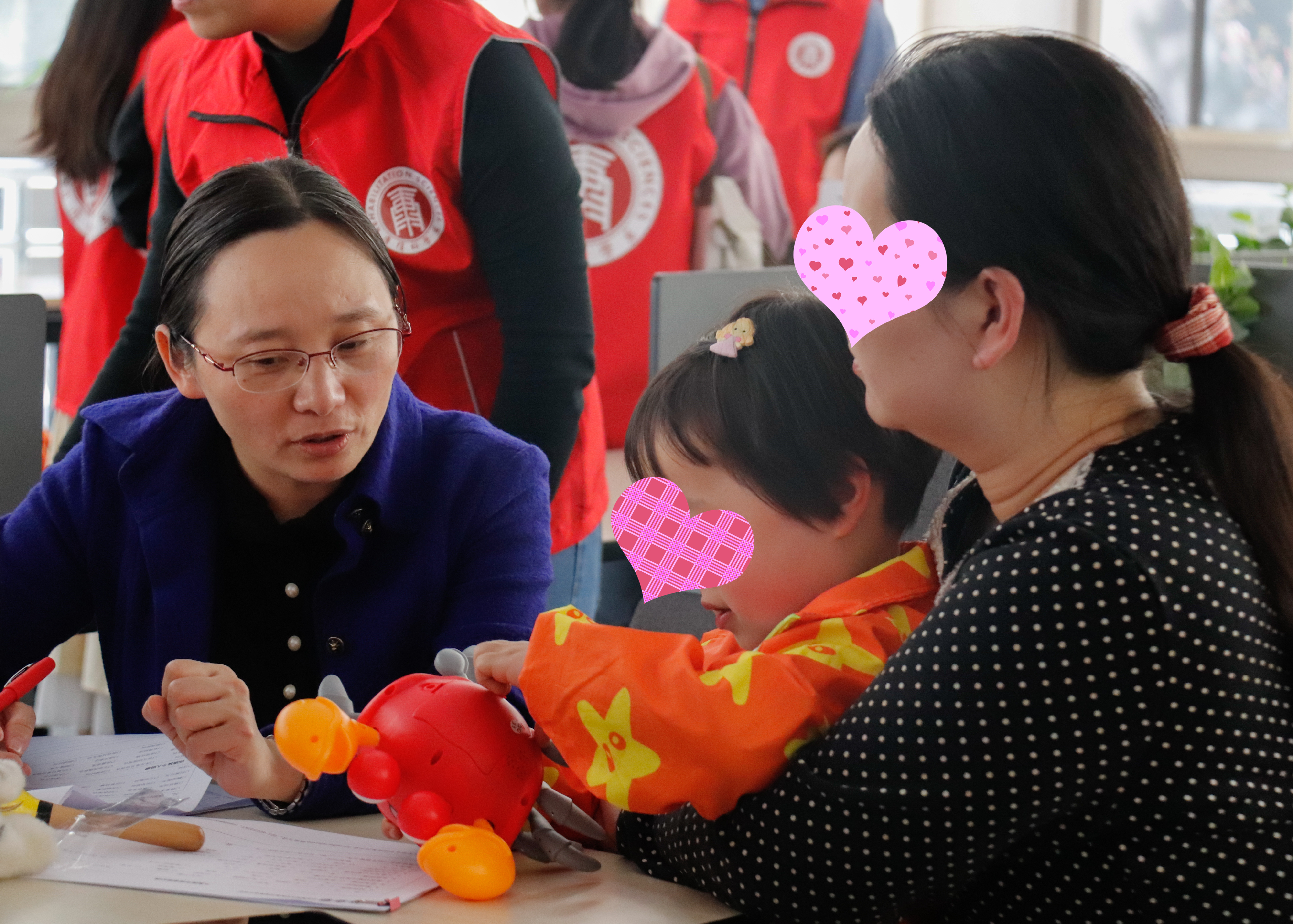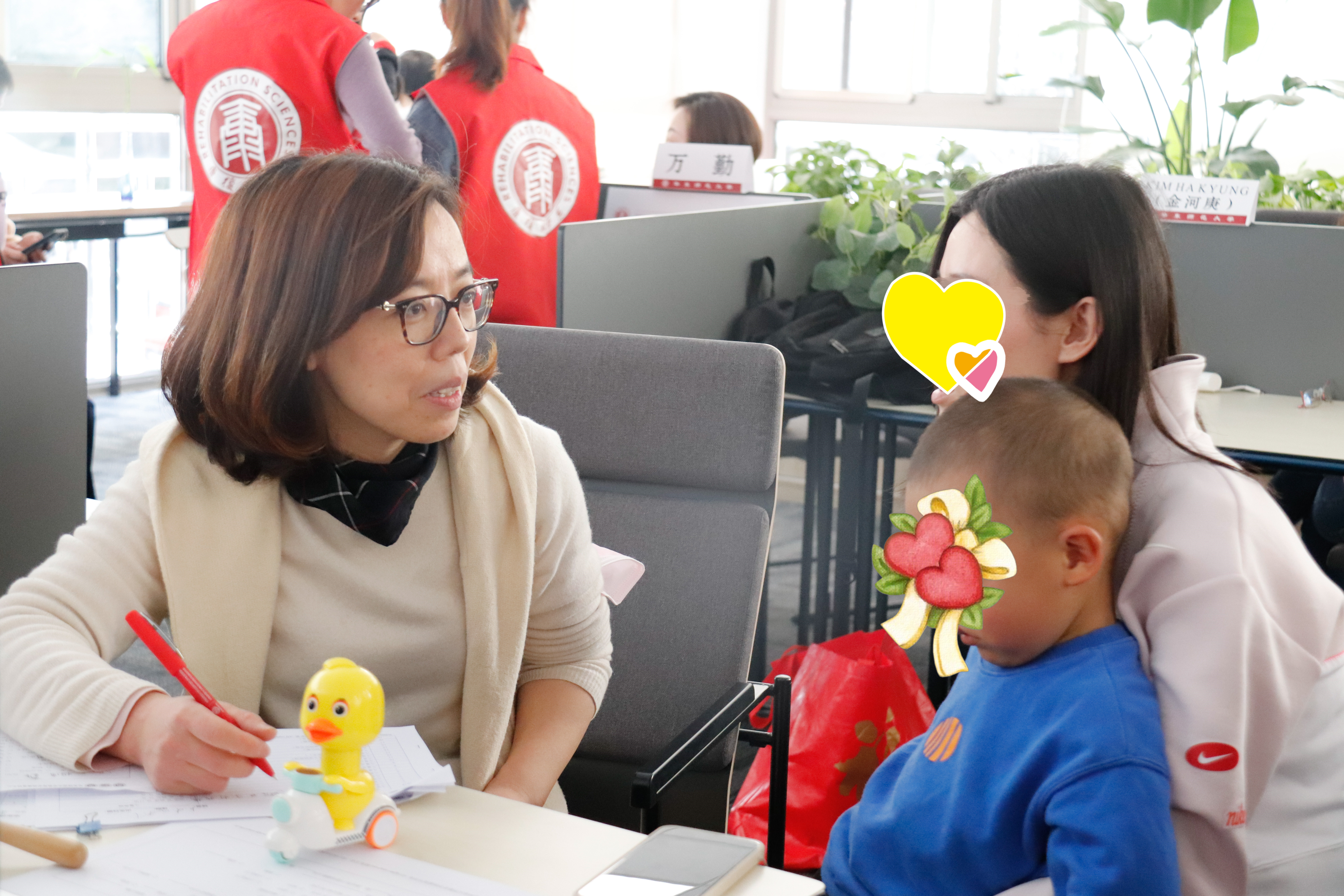 华东师范大学康复科学系金野副教授仔细聆听家长的咨询