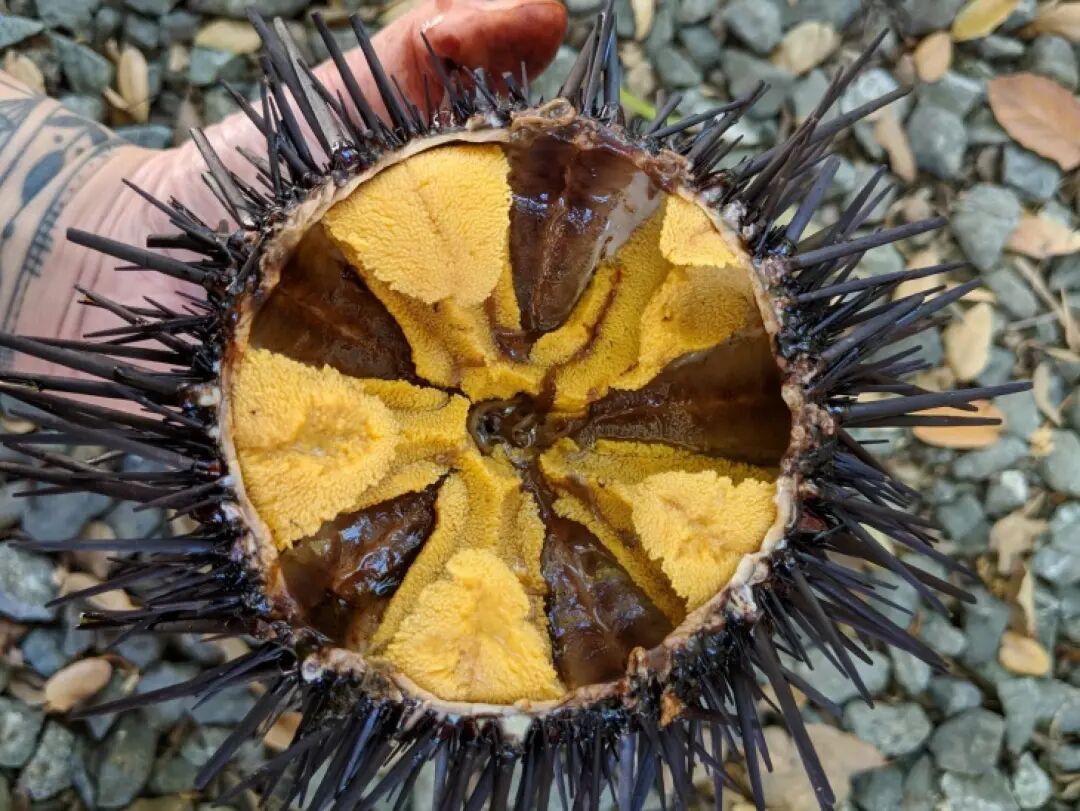 每到繁殖季节,无论熊海胆还是雌海胆,都会有金黄诱人的生殖腺,而且大多数海胆不多不少,正好5瓣。