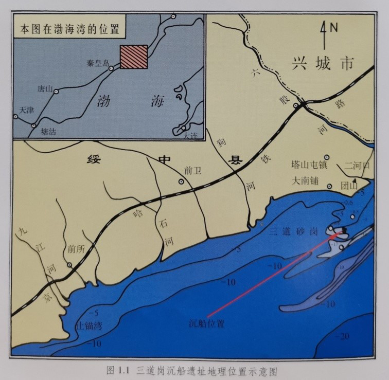 辽宁三道岗元代沉船是1993年度中国十大考古新发现之一。沉船所在的渤海海域属辽宁省绥中县管辖,绥中县位于华北平原与东北平原连接处的辽西走廊上,是一个地扼关内外交通的咽喉地带。沉船遗址位于绥中县大南铺村南面,距离陆地约五公里,海岸线以砂砾岸为主,为天然良港。因沉船近处有三道大的沙岗,当地俗称“三道岗”,沉船因之得名。