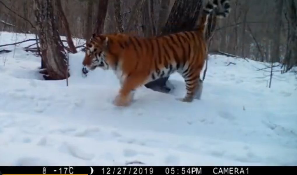虎是一种非常警惕、善于隐蔽自己的猫科动物。在漫长的进化中,虎是一种与人类直接发生冲突的野生物种;对人类而言,虎不是猎物,而是土地和猎物的竞争者、也是野外活动时的敌人。九个老虎亚种,目前已宣告3个亚种灭绝:爪哇虎、里海虎、巴厘虎。/来源WWF在漫长的岁月里,虎逐渐式微,它们在野外的数量如今只剩下3000多只,不到周末一个中国三线城市里大商场的人流量。在这个过程里虎学会了将人类视为天敌:虽然它是顶级物种,但它会躲避人类。因此一只正常健康的野生老虎将会回避人类,避免与人类冲突,这是它的本能。但虎无法避免与人类相遇,因为虎的一些生活习性决定了这一点。虎的领地范围很大,如今几乎不存在这么大的毫无人烟的老虎栖息地。俄罗斯的雌性东北虎家域为224-414平方公里,雄虎则为800-1000平方公里。俄罗斯东北虎保护中心2019年拍摄到的东北虎。/图源网络