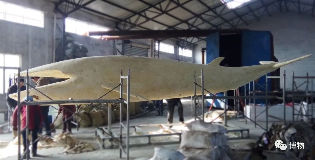 小鳁鲸的假体做好后,由于皮张经过处理有些变形,我们反复“穿脱”多次才把它套好。等到标本最终做完,已经是半年后的事了。
