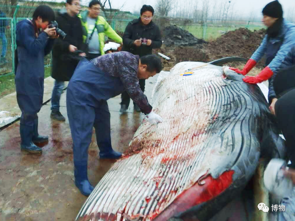 2015年11月,有渔民发现了一头死亡的小鳁鲸,它被运到江苏连云港后,当地请我们把它做成标本。到现场一看,这头鲸足有8米多长!虽说是冬季,但因为这条鲸死了好几天,它的腹部已经腐烂发酵,被气体撑得鼓涨起来。