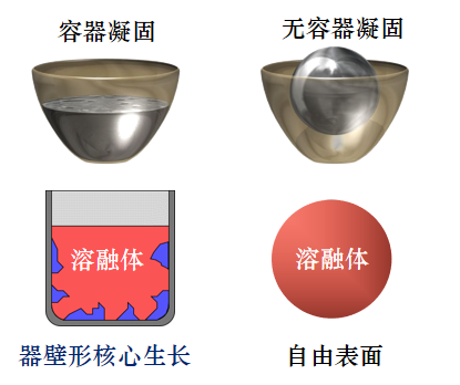 通常熔炼物质都需要使用容器承载熔体,往往会引入杂质,在熔体凝固过程中,会受器壁影响,生长出复杂的微观组织形态。“无容器”顾名思义,就是不用容器承载,使物体在悬空的状态下实现熔炼的过程。