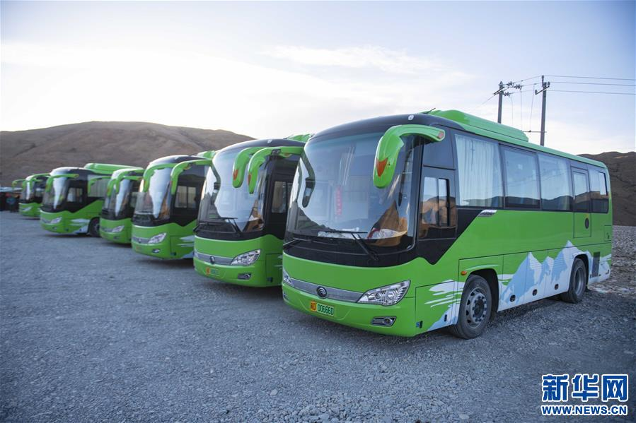 (这是换乘处停车场停放的清洁能源环保客车 新华社记者 罗博 摄)