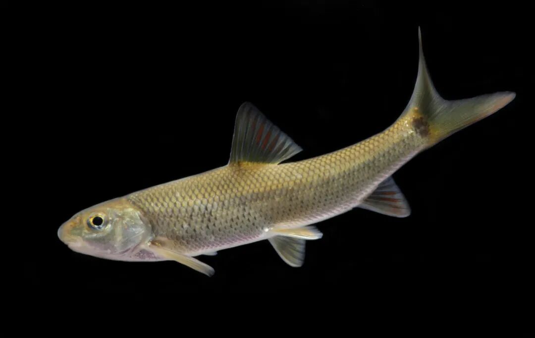 还有一些种类,虽然也具有洞穴生活的习性,但是在形态上,并不表现出明显的洞穴适应性特征,我们称之为非典型洞穴鱼类,比较有代表性的就是多鳞白甲鱼(Onychostomamacrolepis),目前也是我们国家的二级保护动物。