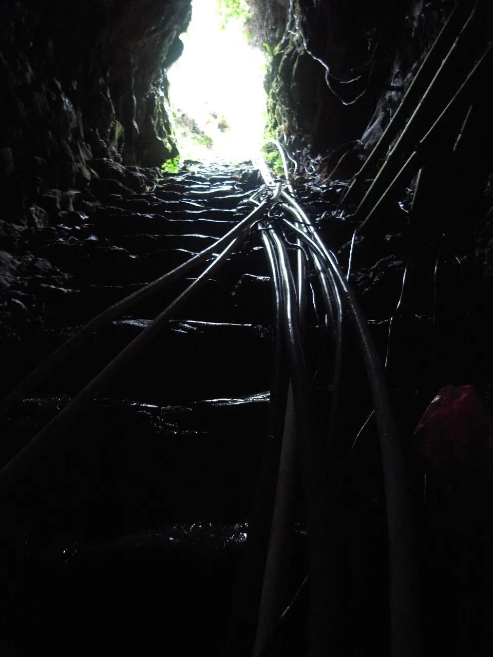 洞穴里面铺设的大量汲水管(赵亚辉摄)