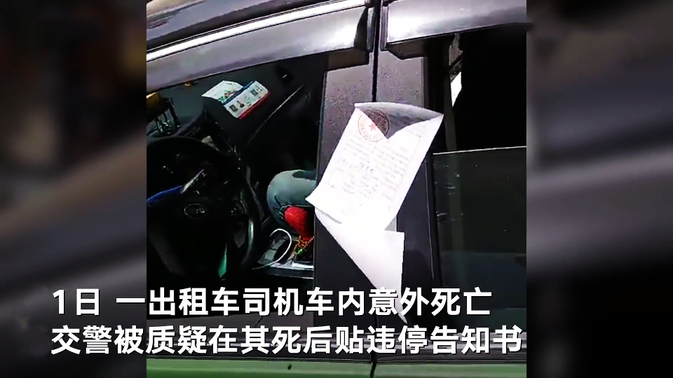 经调取车内视频资料,5月1日凌晨4时57分,该驾驶员行驶至康乐路时停车,后转至副驾驶位,放倒副驾驶座椅后躺卧,出现呕吐、抽搐等症状。至9时42分之后,视频中该司机再无生理动作反应。10时19分,交警新城大队警务人员在执勤过程中,发现该车违法停放,在驾驶位B柱处粘贴违法停车告知单后离开,期间未注意到车内异常。10时43分,群众发现车内人员情况,拨打120,120到达后确认该司机死亡。随后,现场群众报警。