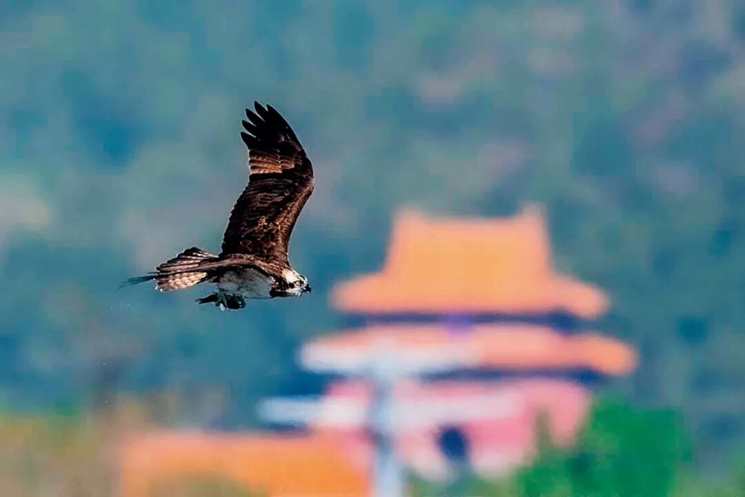 2020年4月,北京市昌平区十三陵水库上空,飞过永陵的鹗。● 徐永春 / 摄