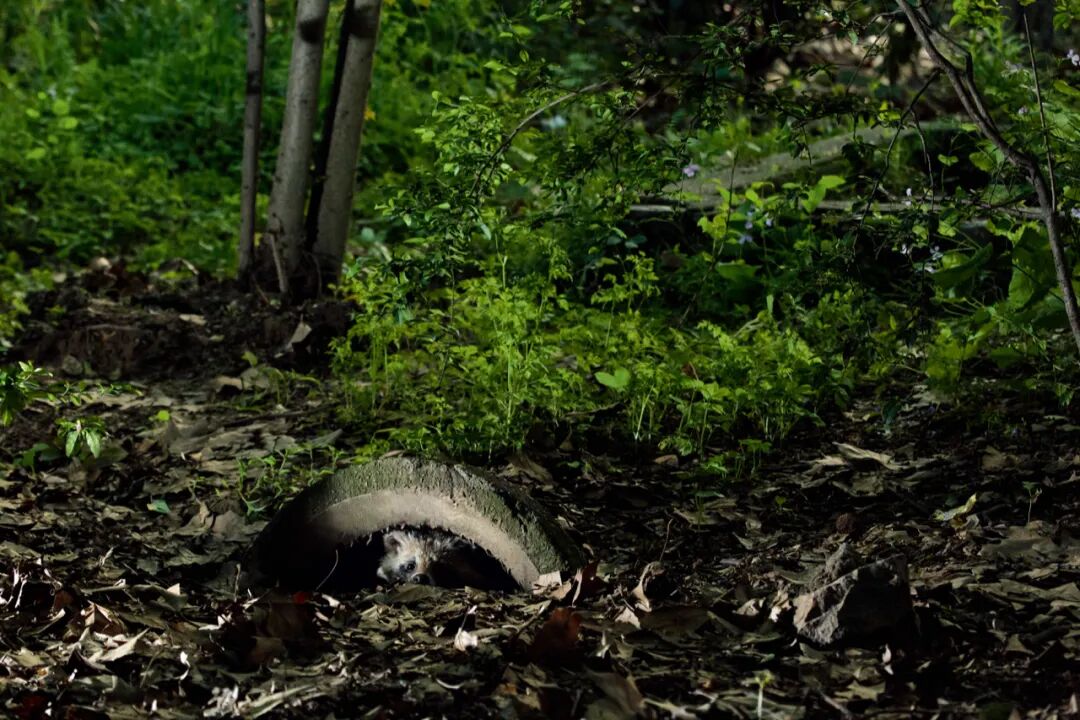 排水沟中隐藏的貉,警惕地观察四周环境。孙晓东 / 摄