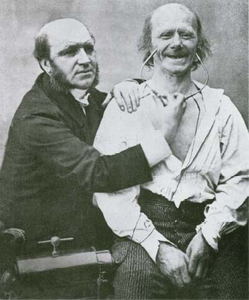 19世纪,杜兴治疗一位面部表情丧失的病人时,发现电刺激可以使得面部肌肉收缩产生特定表情。当刺激眼角与颧骨附近的肌肉(眼圈肌)运动组合时,产生了微笑的表情。这种微笑不仅嘴角上扬,而且眯起眼睛,眼角出现笑纹,脸颊上翘,整个脸上展示着幸福的模样。