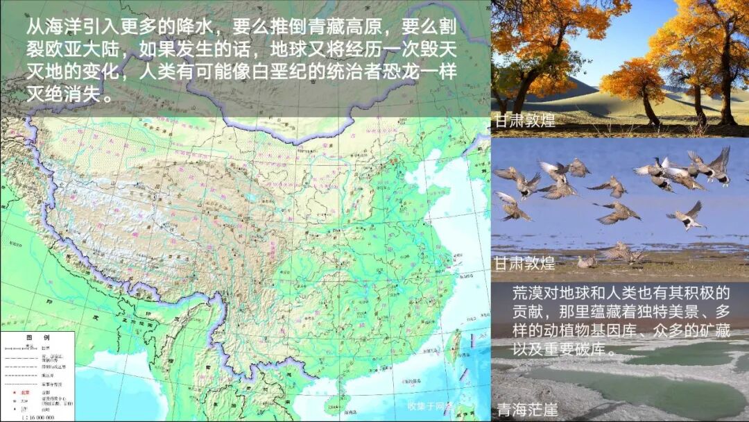 说到荒漠化必须先说荒漠,我国西北地区身居欧亚大陆内部,造就了高温少雨的荒漠环境。我国荒漠的面积十分广阔,总面积超越了100万平方公里,这么大的面积想让荒漠变成绿洲,所需的水量大家可以想一想,一定是一个天文的数字,恐怕也只有大海才有这么多水。想从大海引水到沙漠,我们要么是推翻青藏高原,要么是割裂欧亚大陆,如果发生的话,地球又将经历一次毁天灭地的变化,人类有可能像白垩纪统治者恐龙一样消失灭绝。