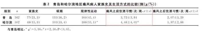 不过有意思的是,痛风之后,青岛人继续饮酒频次要高于哈尔滨。