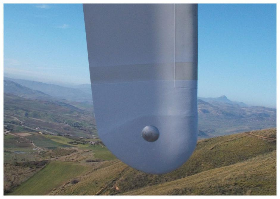 风电叶片是捕获风能的关键部件,它气动外形的好坏直接影响发电量的大小,但我们却并未发现避雷针,叶片到底是如何防雷的呢?原来为了在不改变外形的前提下进行防雷保护,叶片并没有安装避雷针,而是采用了隐秘的保护措施,埋入了金属叶尖以及多组圆柱状接闪器。要说有多隐秘,接闪器的外部端面会与光滑的叶片表面平齐,甚至人眼距离叶片1米远都难以发现它们的存在。