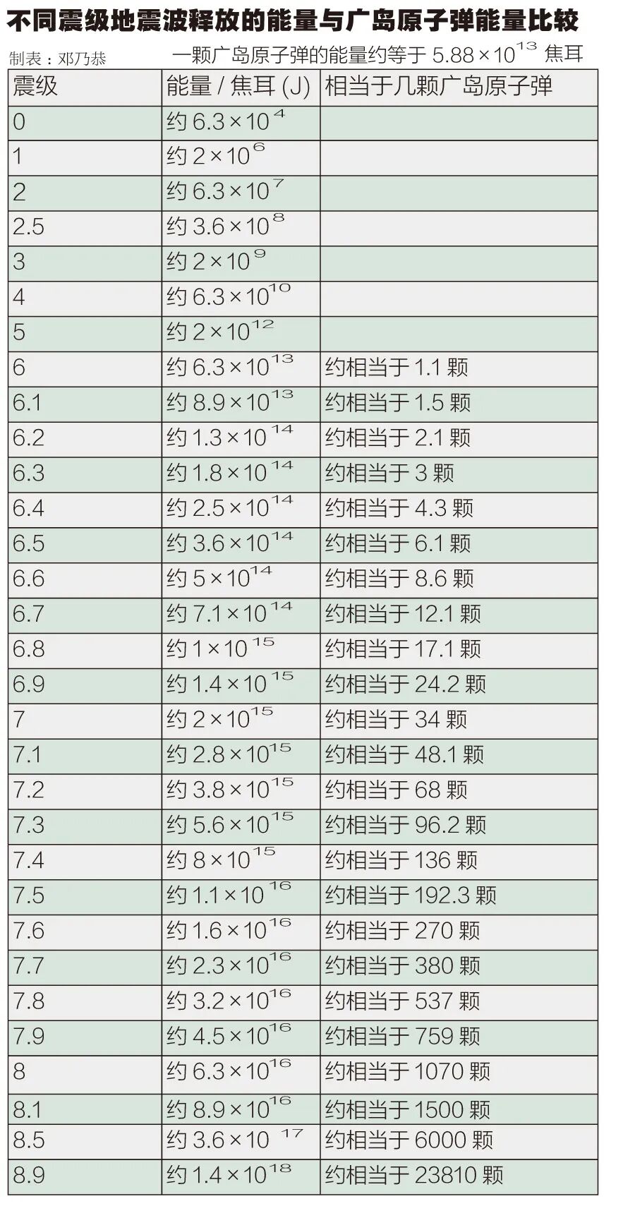根据地震时释放的弹性波能量大小来确定震级