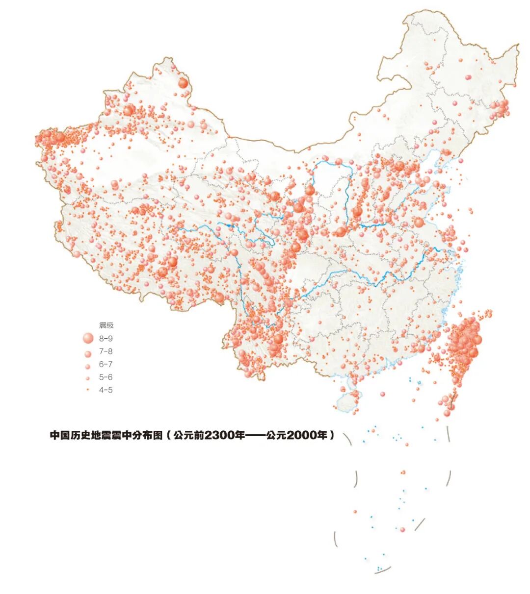 4300年间中、强地震的震中分布地