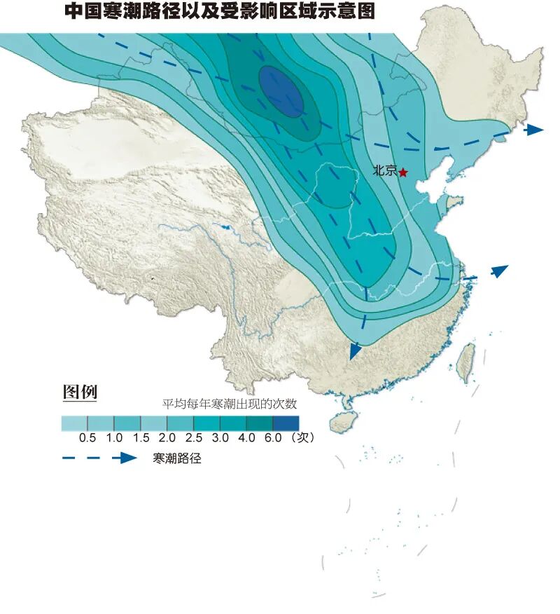 入侵中国的寒潮主要通过四种路径