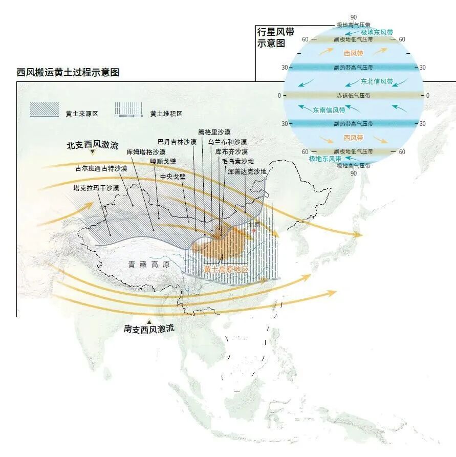 而沙尘暴的沉降地区也集中在黄土高原