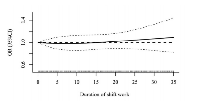 在考虑了潜在的混杂因素后,研究显示,与不值夜班的人相比,夜间值班年头长10年心血管病风险高,≥20年值夜班会增加19%的10年心血管病风险。