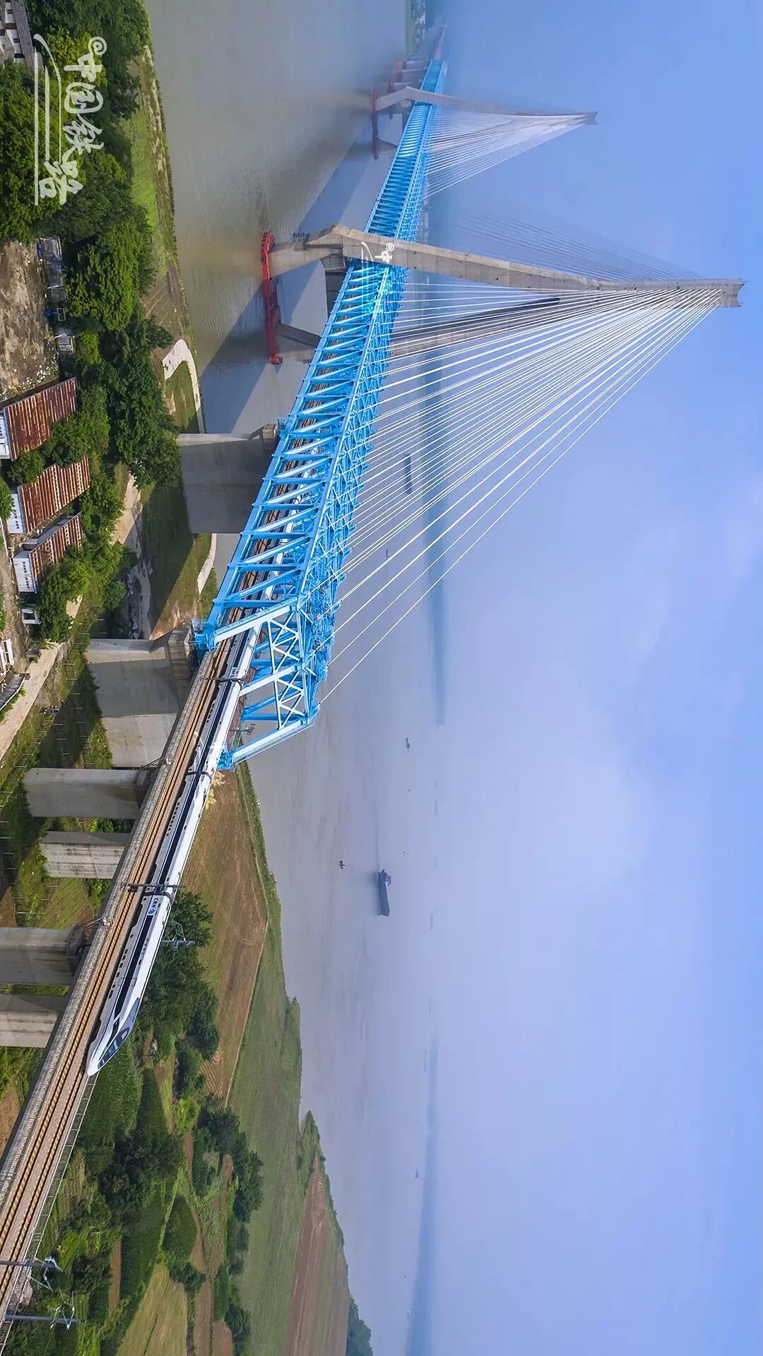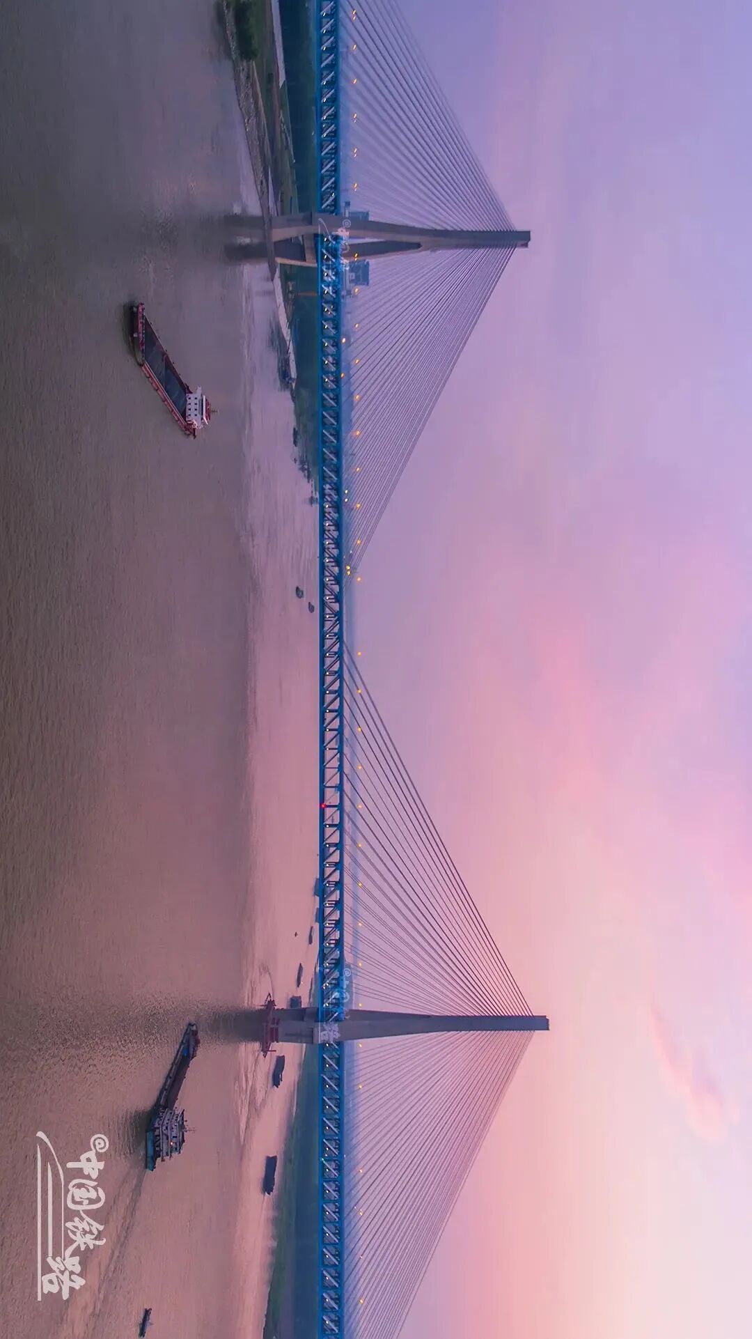 全长1290米,这座双塔斜拉桥的630米主跨刷新了公铁两用斜拉桥跨度的世界纪录。