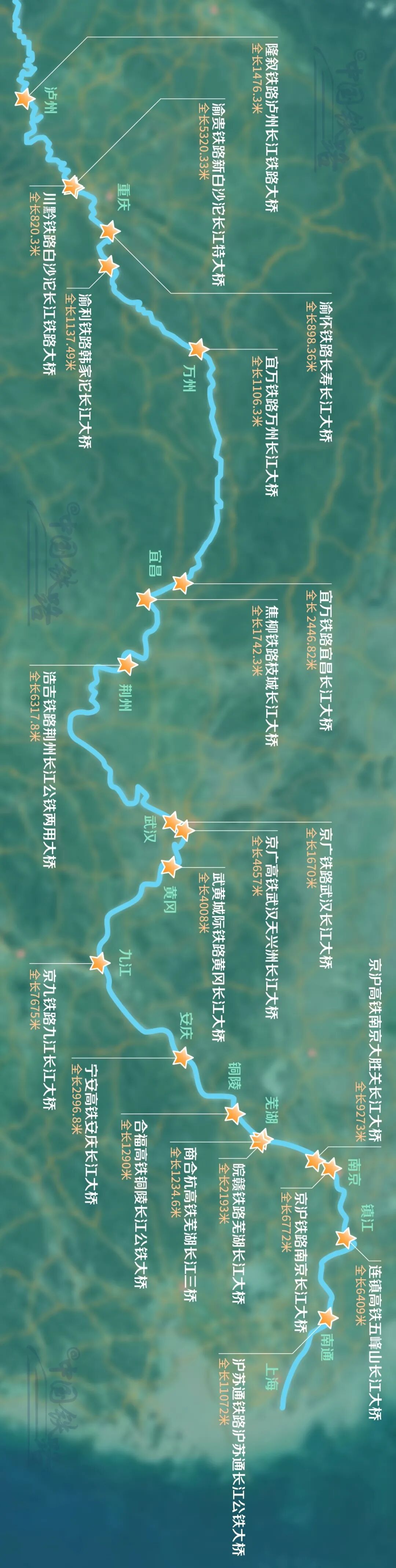 我国第一座跨越长江的高速铁路桥梁,2009年12月26日投入运营,高铁列车经此第一次跨越长江。