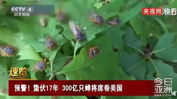 ●美国东部地区日前发布蝉群预警,称300亿只蝉即将破土而出,提醒民众提早做好防御措施。这种学名“布鲁德X蝉”原产自北美洲,是当地特有物种,其幼虫会在树根处的泥土里蛰伏17年,吸食树根汁液为生,羽化成蝉的那刻从地底集体钻出,在地面繁殖后死亡,因此也被称为“17年蝉”。(来源:央视网)