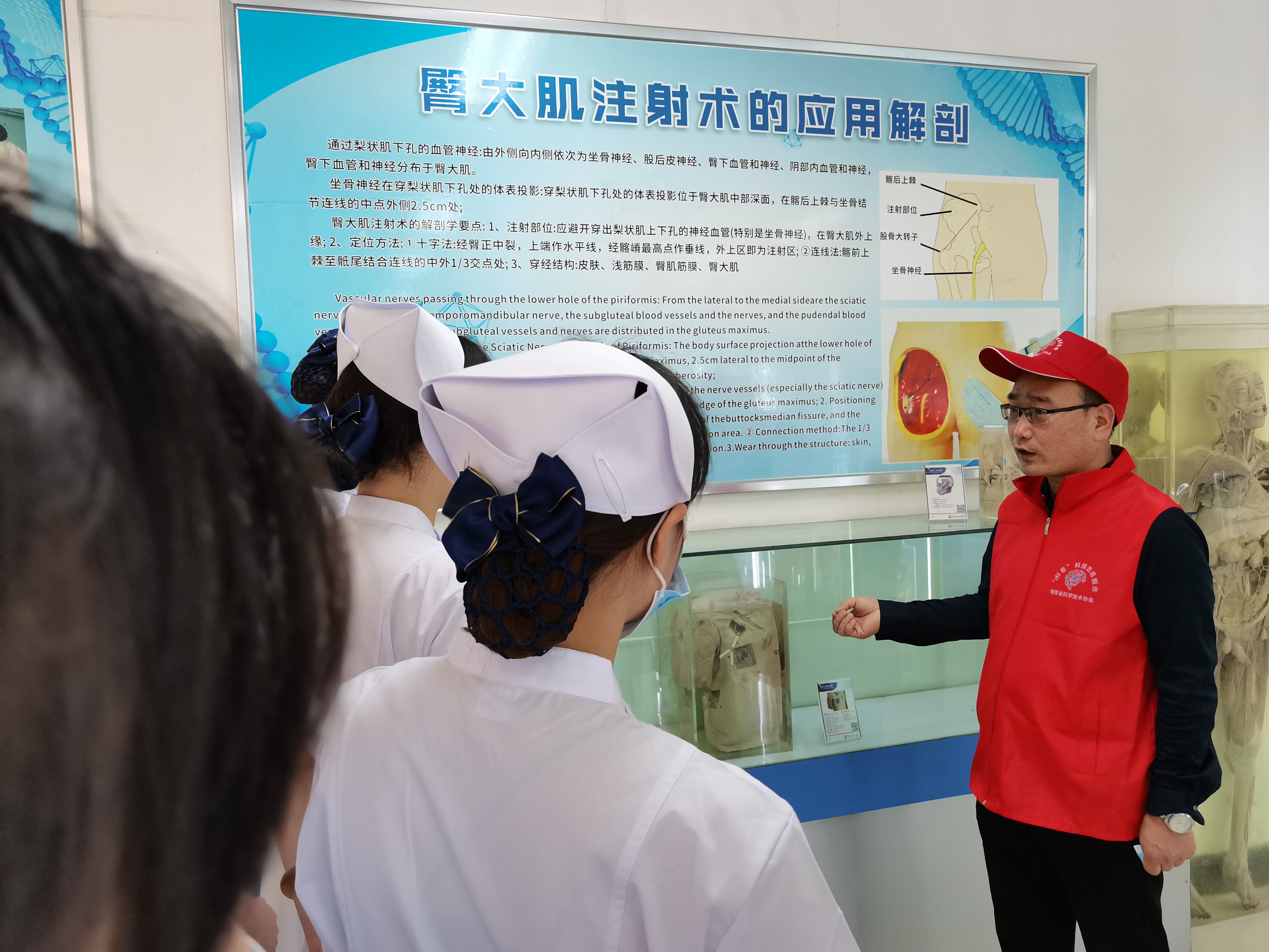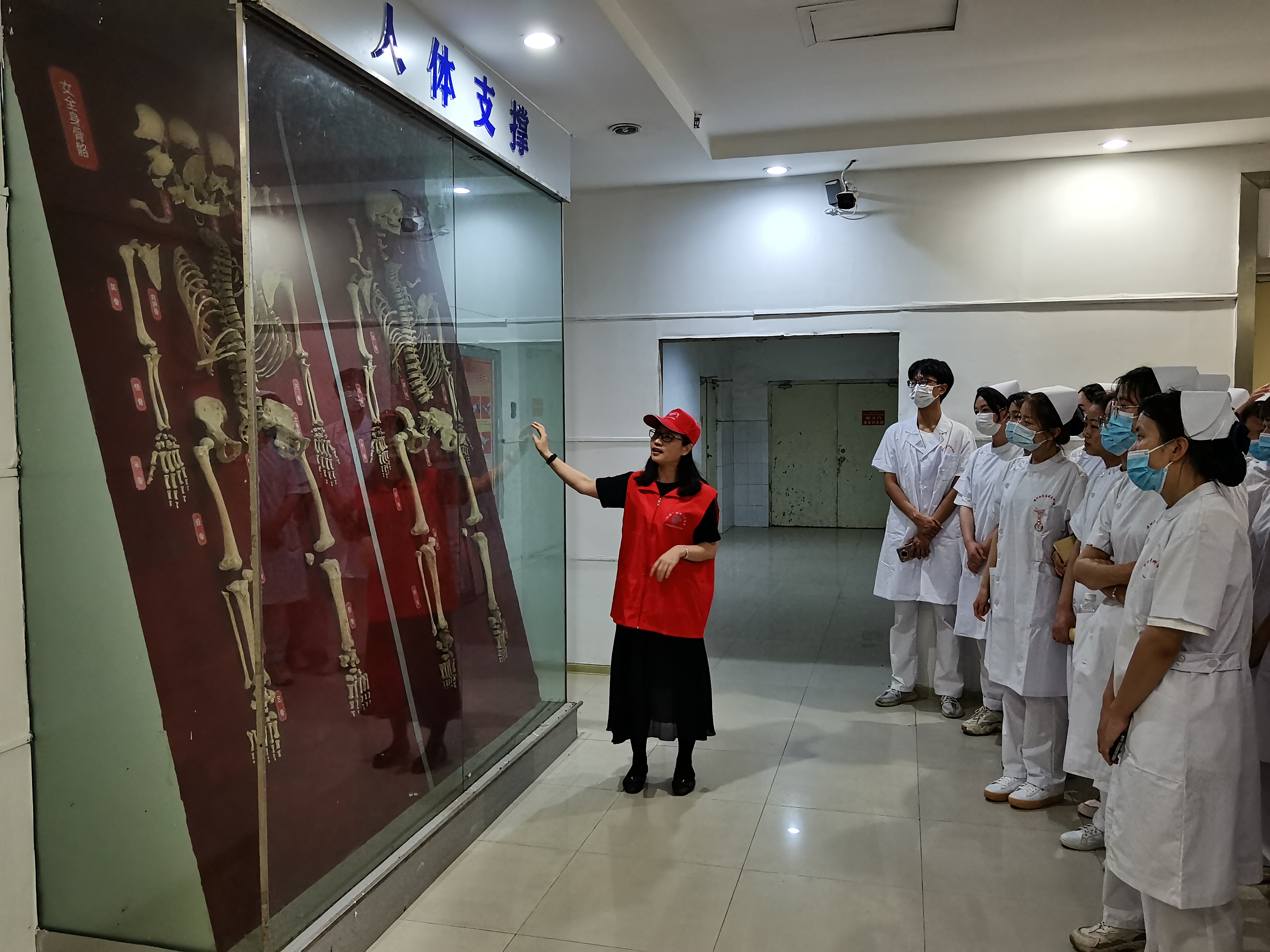 科普团队专职科普员郭芙莲老师以《弘扬大爱精神》为主题,结合课程思政元素,运用通俗易懂的语言对相关知识进行了讲解,倡导现场护理专业学生数理正确的价值观,继承护士精神,传播爱心,弘扬大爱。科普员王丰刚老师带领学生参观了生命科学馆,现场讲解了相关疾病的护理要点,以及肌肉注射注意事项,并对同学们的疑问进行了现场解答。