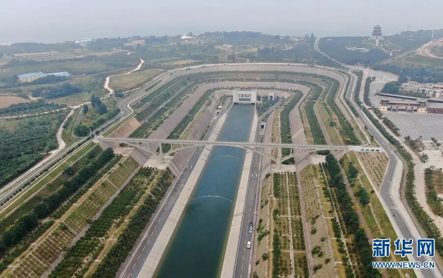 这是2020年9月15日在河南郑州荥阳市境内拍摄的南水北调穿黄隧洞进口南岸明渠(无人机照片)。新华社记者 郝源 摄