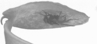对于在顶端的蚂蚁来说,这简直是飞来横祸。几乎是一瞬间,蚂蚁被这种上下的振动所振飞,直直地掉入小猪笼草的笼子里。这种振动的力量甚至能把体型大得多的蝇类也振下来。