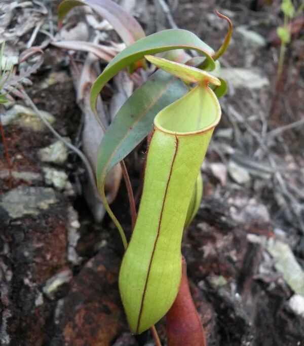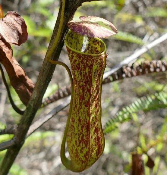 生活在此处的小猪笼草(Nepenthes gracilis)利用雨滴落下的力量帮助自己捕虫。图源:wiki