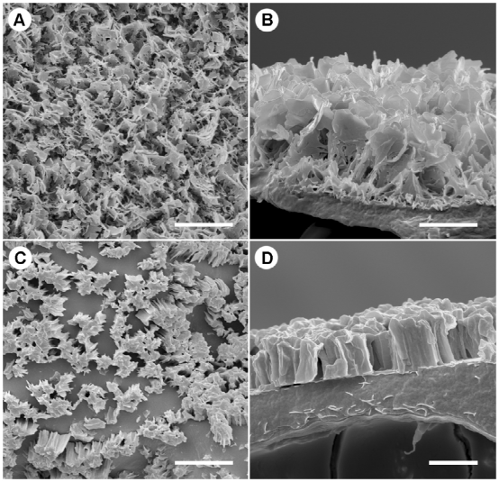 当然,笼盖底下的微观设计也出了一把力。在小猪笼草小小的笼盖底下未震动时,蚂蚁尚且可以抓住它的笼盖来取食蜜,一旦笼盖发力,笼盖底下无数光滑的纳米级蜡质会发挥作用,让蚂蚁在受到扰动的瞬间无法抓住、吸附在蜡质上面。于是,等待蚂蚁的,只有落进消化液中了。小猪笼草笼盖下方微小的蜡质晶体图源:参考文献
