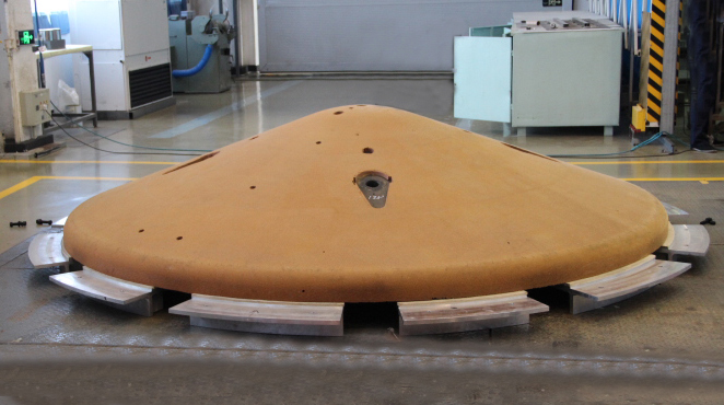 该材料密度约为0.36克/立方厘米,每平方米可承受1.5兆瓦的热流环境,可耐受火星大气以CO2(下标)为主的特殊气氛气动加热。探测器大底结构的直径达到3.4米左右,包括约70000个蜂窝格子,团队采用整体成型工艺,确保了在如此多的蜂窝格子中材料一次性灌注到位。