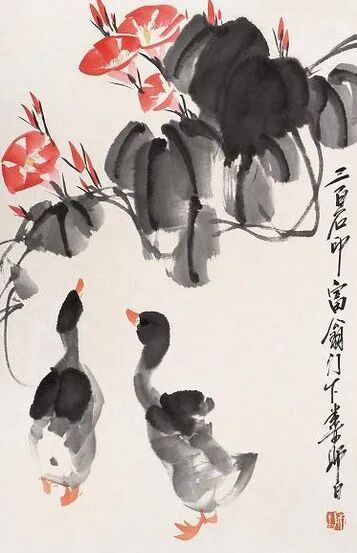 名家画廊 | 娄师白,原名娄绍怀,曾用名娄少怀,字亦鸣,斋号老安馆。他全面继承齐白石艺术技法特色,并有所创新,画作简练中有种生机勃勃的感觉,尤以画小鸭子著称。