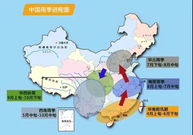 我国雨季进程开始得早,反之则开始晚一些