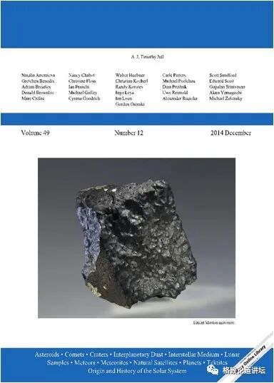 这是杂志的封面,登出了这块陨石,而且登出了全部的结果,时间是2014年12月2日。